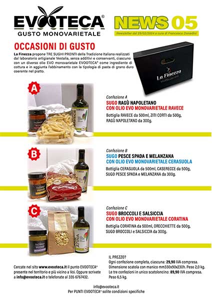per disporre o regalare una selezione di oli EVO monovarietali da abbinare ai cibi.