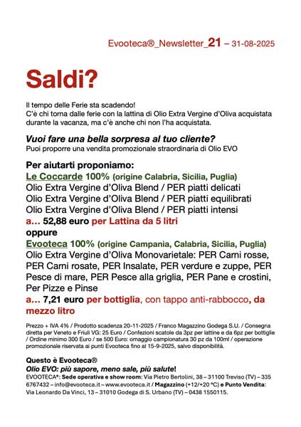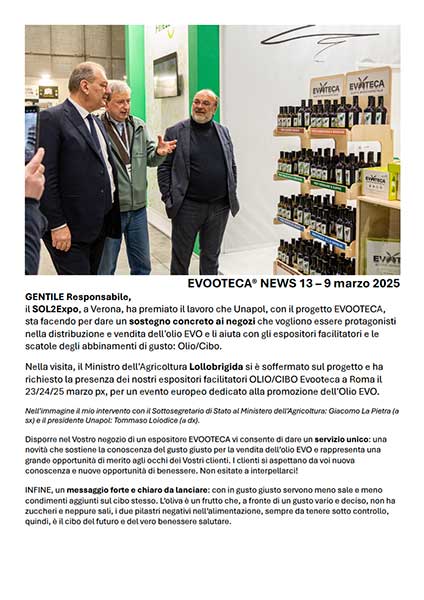 Invia la tua richiesta per capire come poter diventare un PUNTO VENDITA EVOOTECA®